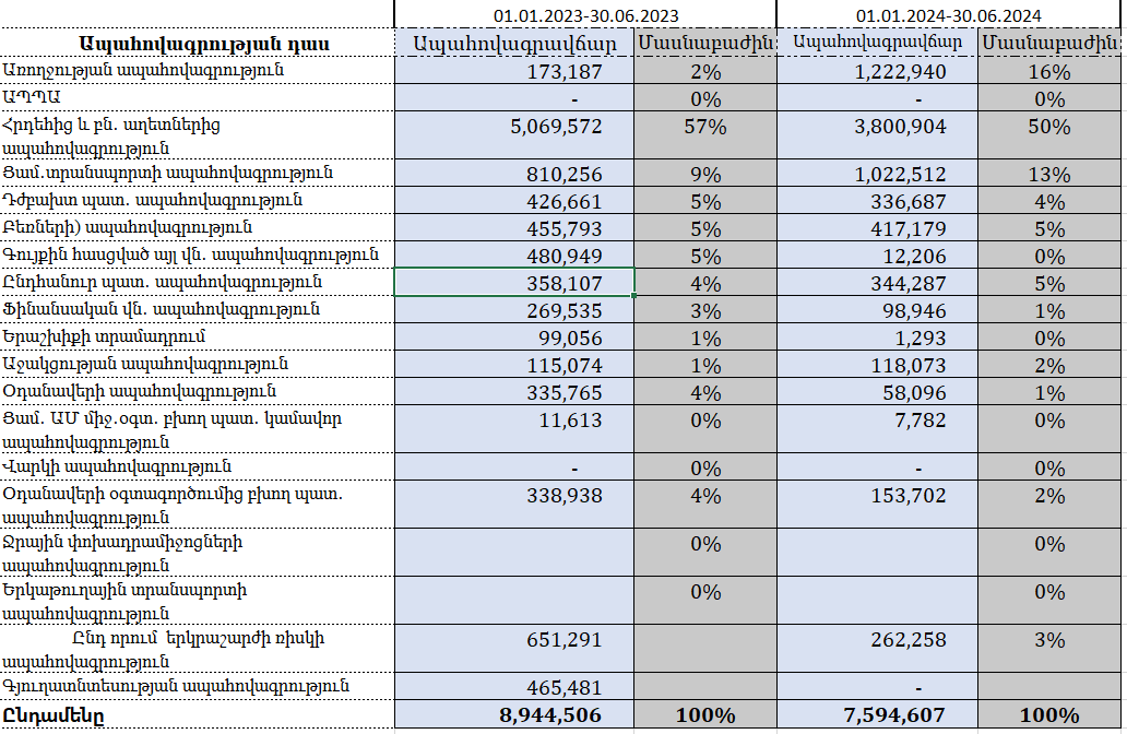Ներկայացնում ենք կուտակային վերաապահովագրավճարները 30․06․2024 դրությամբ․