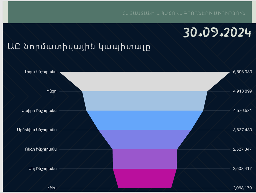 Ներկայացնում ենք Հայաստանում գործող ապահովագրական 7 ընկերությունների նորմատիվային կապիտալը 30․09․2024թ․ դրությամբ․